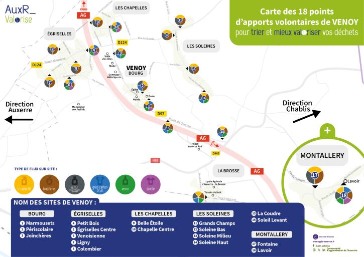 À partir de juin 2025, votre commune teste pour une période d’un an la collecte des déchets en Points d’Apport Volontaire (PAV). Vous allez expérimenter cette nouvelle forme de collecte qui va favoriser le traitement et la valorisation des déchets de notre territoire.Votre commune est équipée de plusieurs unités de valorisation qui regroupent au même endroit des PAV pour trier jusqu’à six flux de déchets. Pour rappel : PAV accessibles aux personnes à mobilité réduite et une aide des communes est proposée pour les personnes en perte d'autonomie. Ouverture facile Collectés et nettoyés à 80% de leur capacité Surveillés par une brigade verte un bioseau et un sac de pré-collecte sont à votre disposition auprès de vos communes Pour vous aider à bien trier Ce document a dû vous être distribué par votre commune. Mémo-tri Télécharger Taille : 6.76 Mo Extension du fichier : pdf Publié le 07 Nov. 2025 Où trouver vos PAV ? Zoom sur l'image